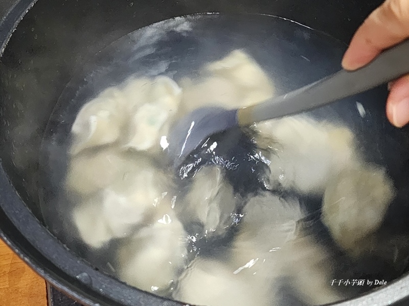 煮水餃沒什麼功夫,也不用廚藝,水滾後放入,輕輕攪拌避免沾黏。